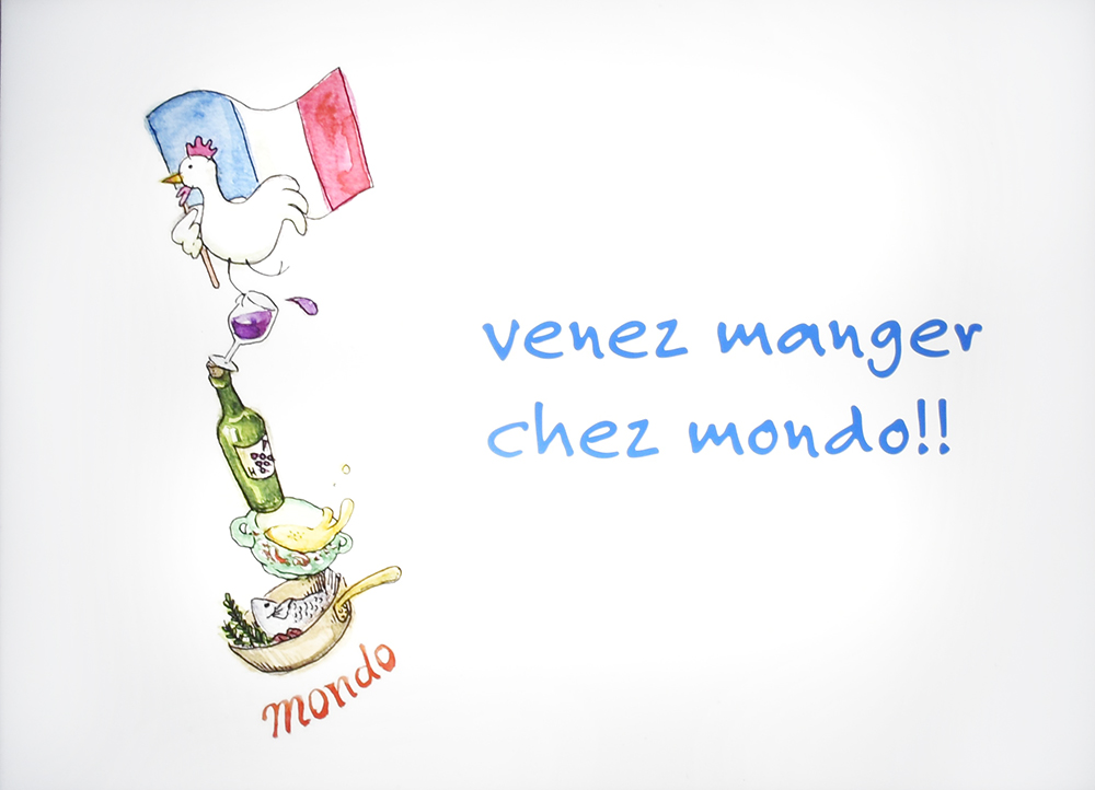 フランス料理店mondoは、フランスで買い集めたテーブルウエアや小物、毎週届く生花で飾られた暖かな雰囲気の中、シェフの作り出す渾身のフランス料理をソムリエである息子が厳選したワインと楽しんでいただけます。